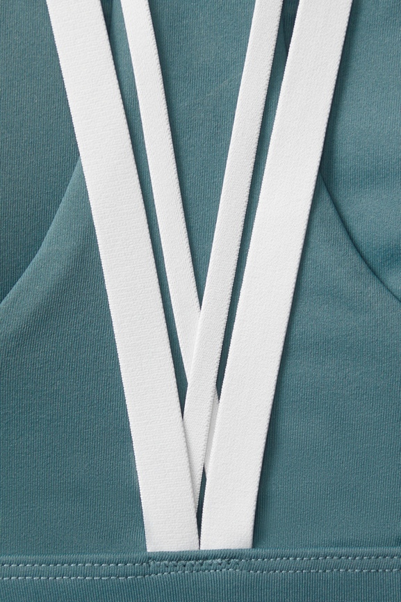 Standard sports bra from the front, major strap party from the back. Mix up your routine in our medium-support style with all the technical features your drills depend on.